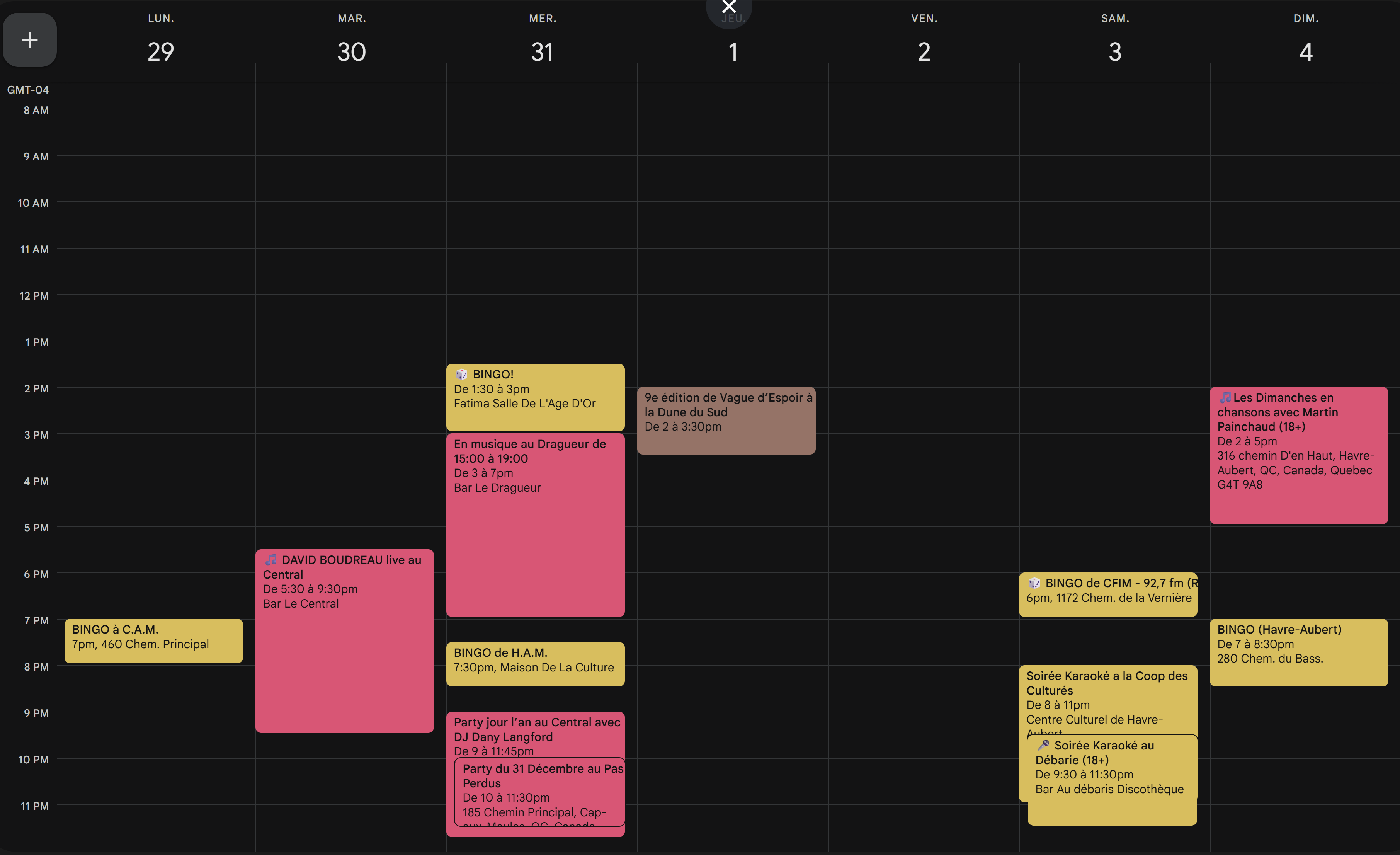 * Cliquez sur chaque événement pour voir tous les détails (lieu, prix, billetterie, inscription).
